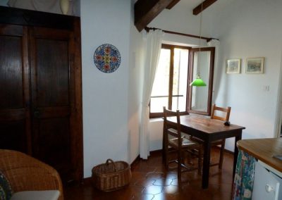 Lejlighed 10 er Aubergets mindste, men til gengæld mest charmerende lejlighed. Den har stue, køkken og bad fordelt på 36 kvadratmeter med højt til et smukt bjælkeloft i ægte Provence-stil. Der er udsigt mod bjergene i nord, hvad der er en fordel på varme sommerdage.
