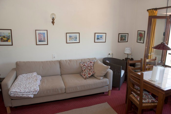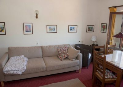 Lejligheden er ca. 53 kvm. med en sydvendt stue med udsigt over haven. Møbleret med spiseplads, lænestole og en sovesofa m.m.